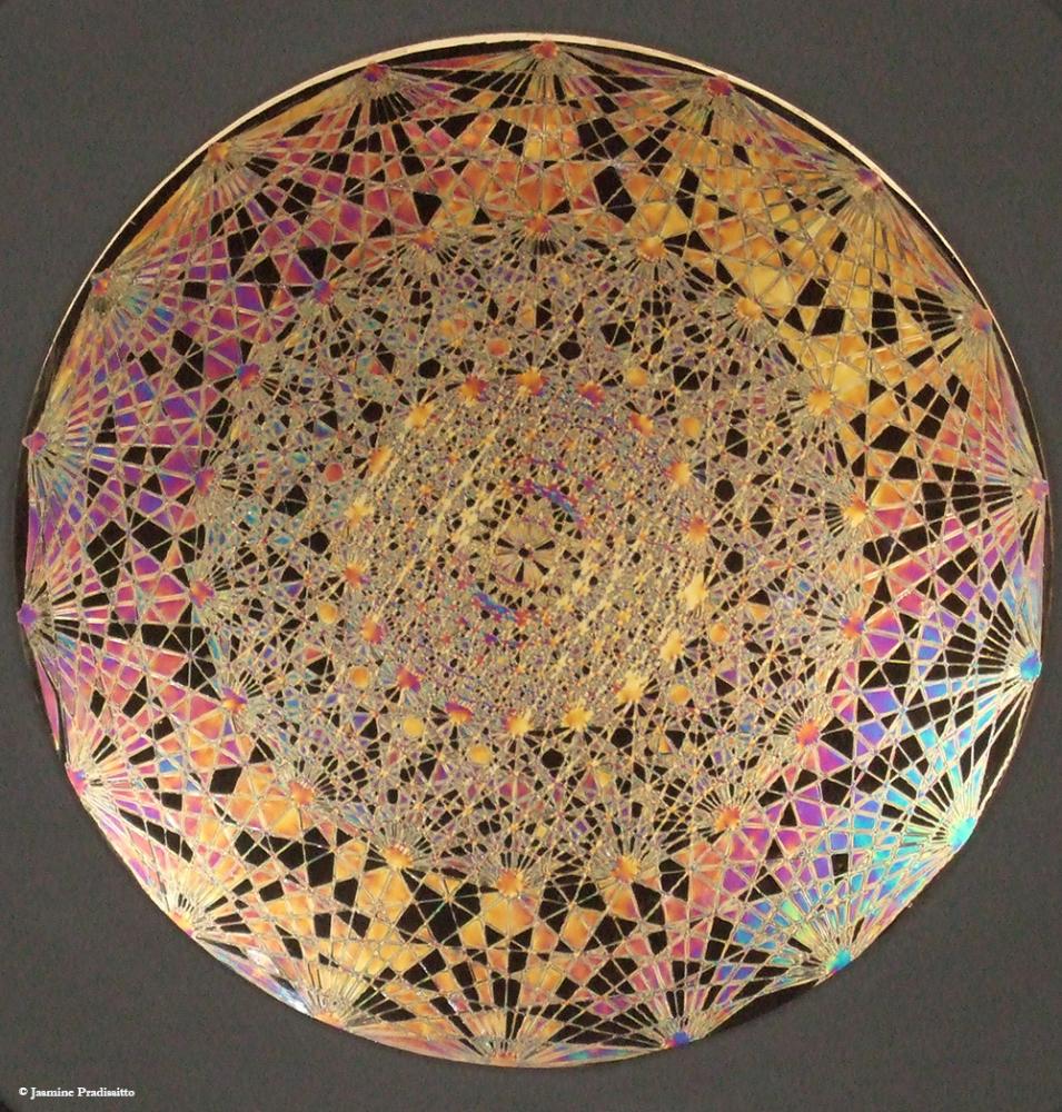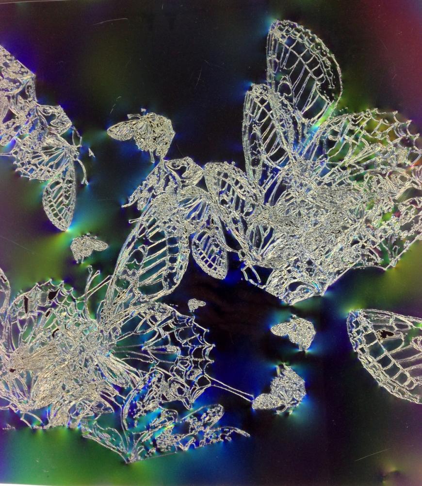 2012 Painting in Light 60x60cm (seen at one angle). SHORTLISTED FOR THE THREADNEEDLE PRIZE 2012The ‘butterfly effect’ is a term used in Chaos theory to describe how small changes to a seemingly unrelated thing, can affect large, complex systems. In humans it may be possible for small initial changes to render behaviour unpredictable. Ironically, Chaos is also responsible for fractals or repeating patterns, many of which surround us in the natural world…..rendering it harmonious.